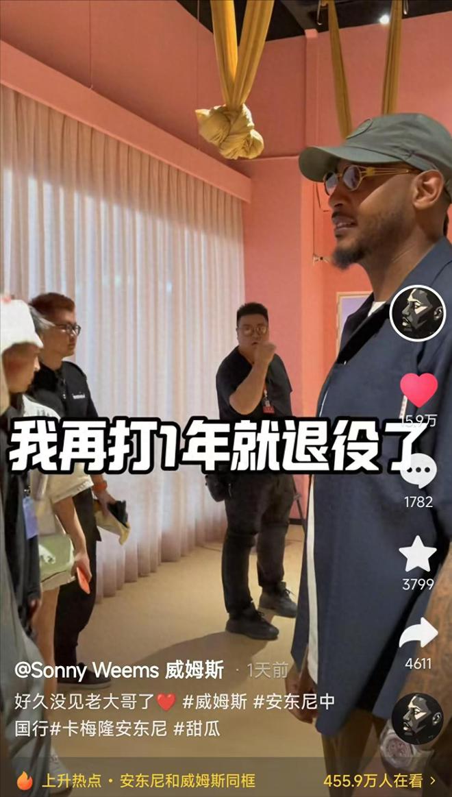 近日,威姆斯晒出与NBA传奇球星安东尼互动的视频,安东尼来中国参加活动,威姆斯也在场,威姆斯对安东尼说他已经在中国第八年了,还打一年就退役了。视频很多广东球迷留言,希望他最后一个赛季可以回到宏远退役。